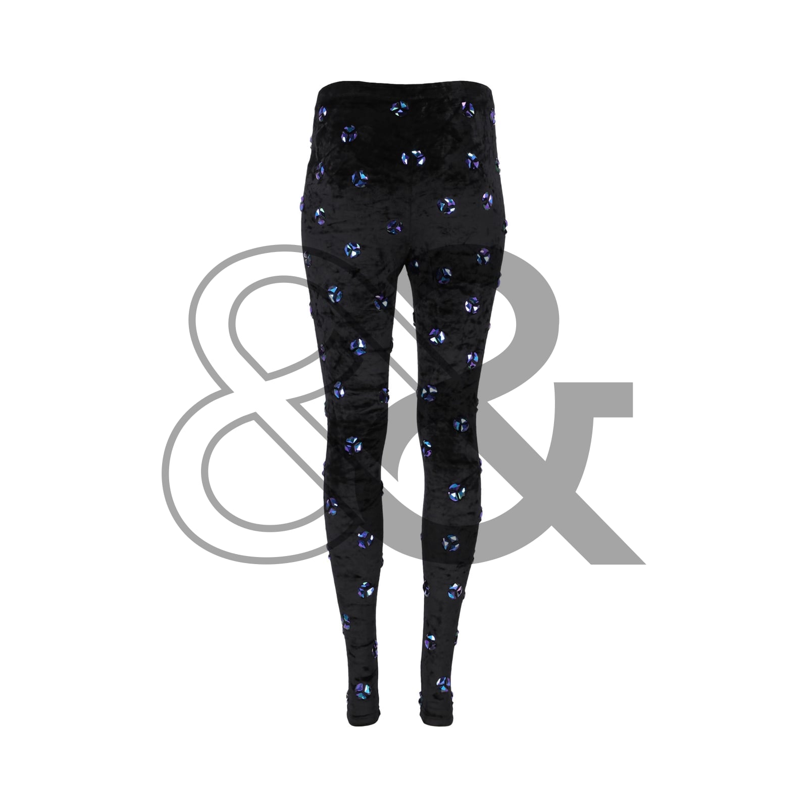 Crushed velvet meets a scattered constellation. Iridescent rhinestones set across deep black velvet, catching every frequency of light as you move — a starfield you wear. Part of the Galaxy capsule — hand-set to order, sized S through XL. Your own private galaxy.